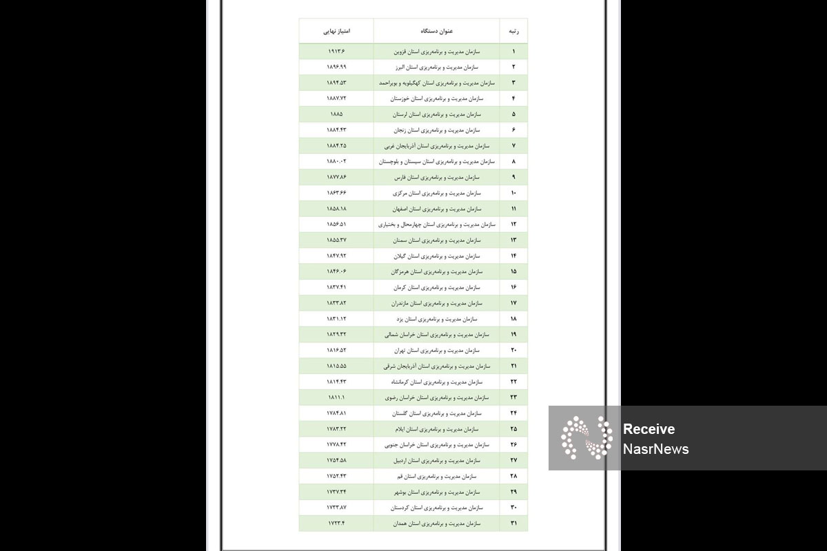 در این رتبه بندی سازمان مدیریت و برنامه ریزی استان همدان رتبه آخر را به خود اختصاص داده است.